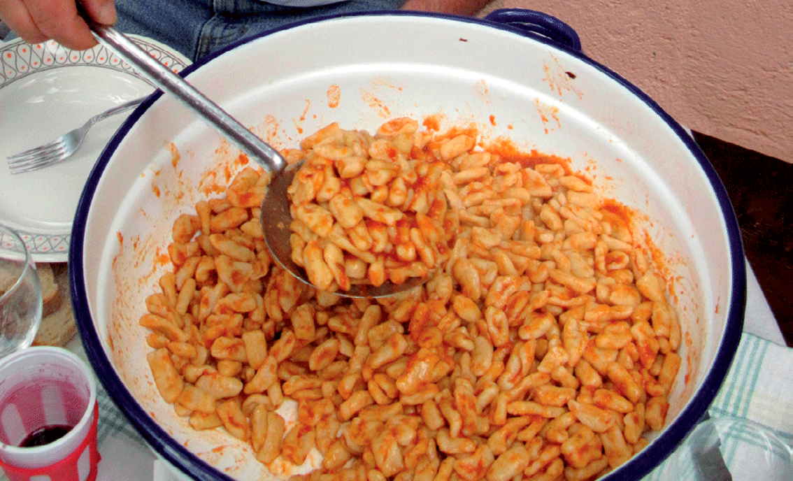 Ci si limita a indicare qui di seguito alcuni dei piatti piú tipici, della quotidianità o rituali della tradizione locale.