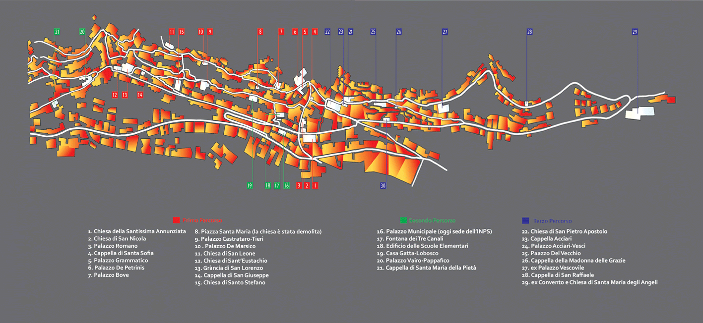 Alla luce della radicale trasformazione del tessuto socio-economico cittadino degli ultimi cinquant’anni ben si comprende, dunque, il declino del centro storico, da tempo abbandonato dalle antiche casate e dalle famiglie borghesi, oggi pressoché privo delle attività artigiane che un tempo l’animarono; al contempo si spiega anche il graduale ma inesorabile spostamento delle principali attività commerciali e amministrative dell’ottocentesco centro cittadino, che si dispiegava intorno alla Piazza Umberto primo e al corso Vittorio Emanuele, verso le aree di più recente urbanizzazione, lungo l’asse tracciato dalle vie Mezzacapo e Matteotti fino alla frazione di Trinità.