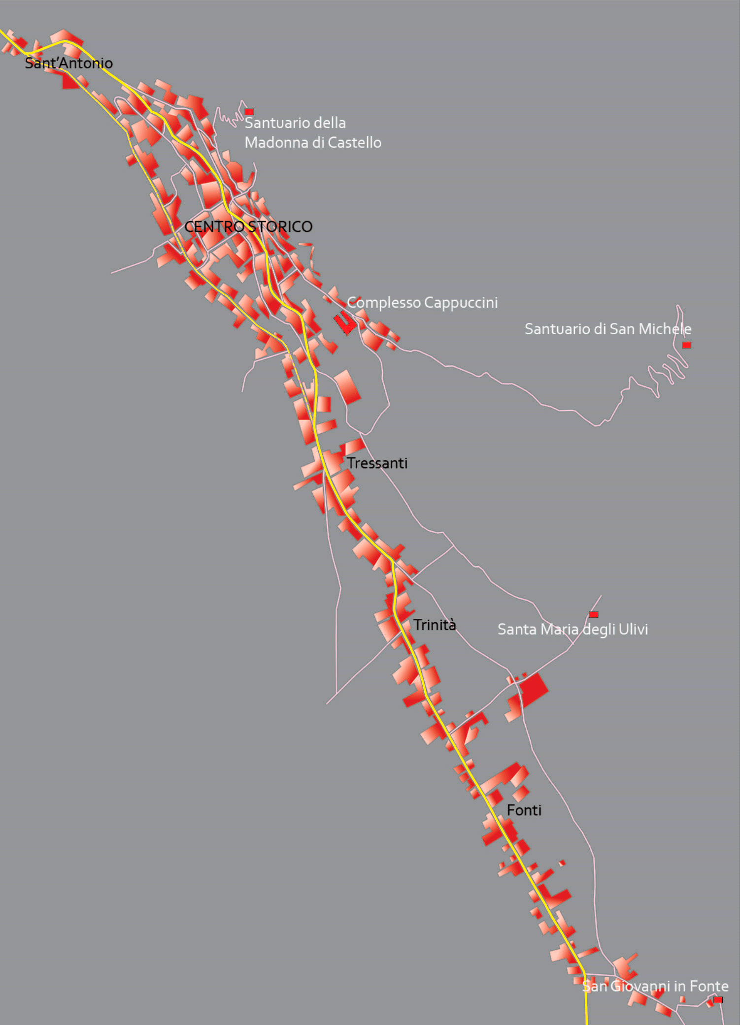 Alla luce della radicale trasformazione del tessuto socio-economico cittadino degli ultimi cinquant’anni ben si comprende, dunque, il declino del centro storico, da tempo abbandonato dalle antiche casate e dalle famiglie borghesi, oggi pressoché privo delle attività artigiane che un tempo l’animarono; al contempo si spiega anche il graduale ma inesorabile spostamento delle principali attività commerciali e amministrative dell’ottocentesco centro cittadino, che si dispiegava intorno alla Piazza Umberto primo e al corso Vittorio Emanuele, verso le aree di più recente urbanizzazione, lungo l’asse tracciato dalle vie Mezzacapo e Matteotti fino alla frazione di Trinità.